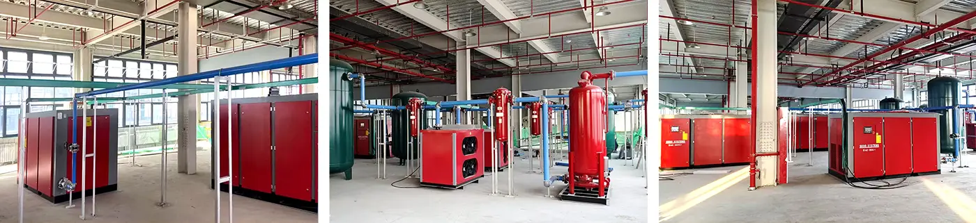 · Kompresor Dvojdielnych kompresných skrutiek: BAE - 90A+. Jeho optimalizovaná štruktúra skrutiek a efektívny kompresný systém zabezpečujú, aby zariadenie mohlo stabilne pracovať a zároveň zlepšiť účinnosť kompresie, čím poskytuje nepretržitý a stabilný zdroj plynu pre výrobu podnikov.